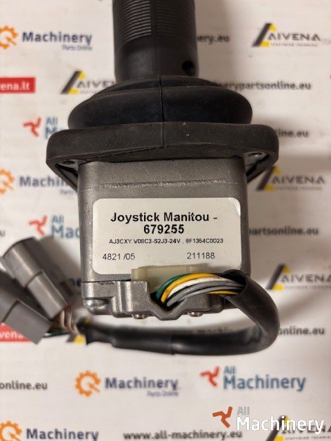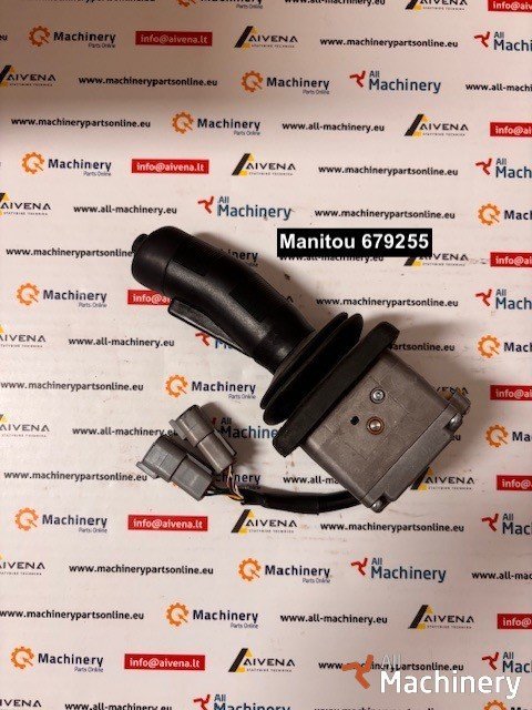 For sale: Manitou 679255 joystick controller, an OEM proportional control joystick used in Manitou telehandlers and lifting equipment. This controller provides precise control of hydraulic functions such as boom lift, extension, tilt, and drive.