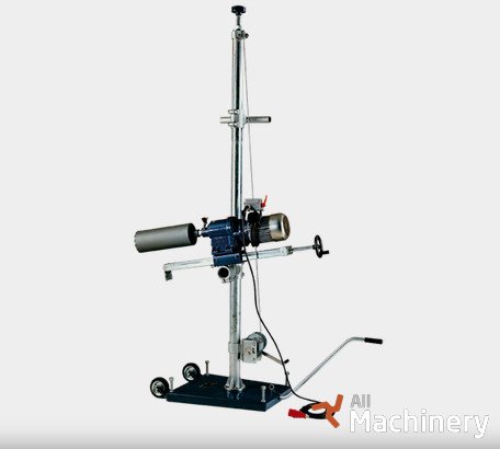 On frame for depths of up to 30 m, versatile with beam unit - able to turn through 360° horizontally/vertically for drilling in any position. Two advancement speeds with male and female screw, possibility of shoring up on ceiling by extending by a few metres, beam lifting winch, special fixture for mounting on scaffolding. PRCD 30 mA switch and transport wheels. Accessories: water collection conveyor, 50/80cm pillar extensions. - locking device for fixing pillar to scaffolding - beam lifting winch - beam fixture to scaffolding with 360° rotation.