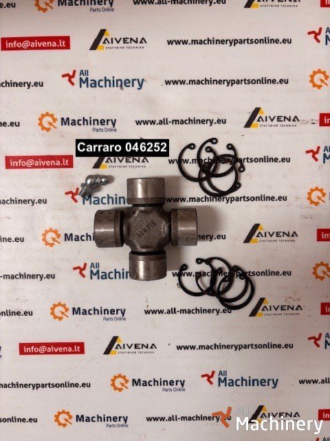 Original Carraro part number 046252 universal joint (sometimes called a spider or double U-joint cross) — a genuine OEM drivetrain component used in Carraro axles, steering assemblies and drive shafts on tractors, loaders, agricultural machines, construction equipment and other heavy-duty vehicles. The universal joint connects rotating shafts at different angles, allowing smooth torque transfer even when the axle, drive line or steering linkage moves under load.